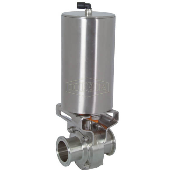 Features: Shipped fully assembled, including pneumatic actuator and mounting bracket assembly Construction: Vertical spring return pneumatic canister style actuator EPDM Elastomers Available Options: Silicone and FKM Elastomers also available Other end configurations available, contact Dixon for more information Note: Not for use with bolted clamps. Safety notes: WARNING: Cancer and Reproductive Harm- www.P65Warnings.ca.gov