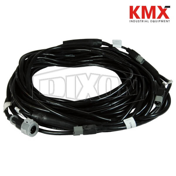 Features: Prewired and factory tested with Plug-n-Play cabling and plugs, eliminates hours of manual crimped wire connections, and removes the problems and worries associated with connection problems. Plug-n-Play cable harnesses come preconfigured for the type of tank (truck mounted tanks or for full length tank trailers) the number of tank compartments, standard harnesses have been designed to fit most standard tank configurations. Secure and weather tight connections all the time, remove the possibility of poor wiring connections. Five compartment truck mounted tank. Overfill detection (top) cable harness with Plug-n-play connections