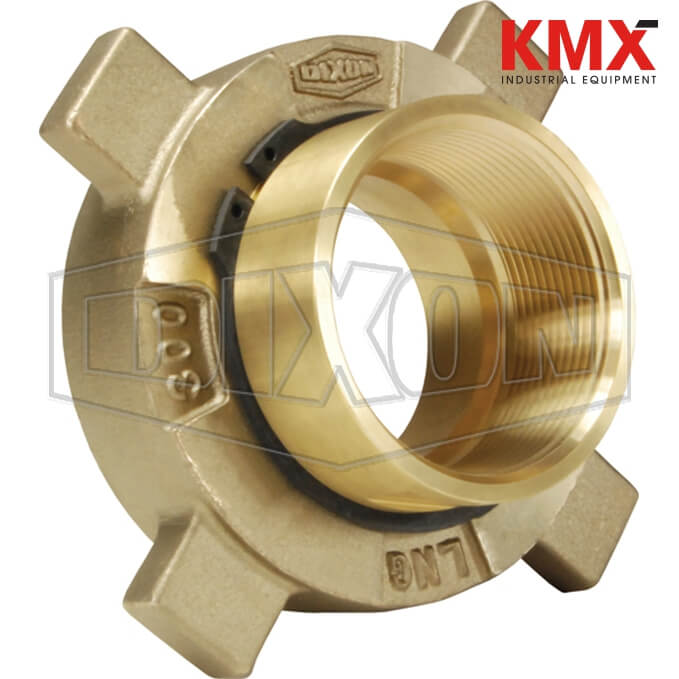 Features: Fixed end design threads on tank truck pipe connection line, manifold, pipe outlet or pipe connection Female NPT thread hose end attachment Connect by hammering the acme threaded nut on the fixed end PTFE gasket reduces force needed to make a tight connection Snap ring keeps connection nut in place for easier connecting Safe and reliable transfer of cryogenic liquified natural gas products Hose end lugs intended to be struck with a non-sparking hammer or similar non-sparking device